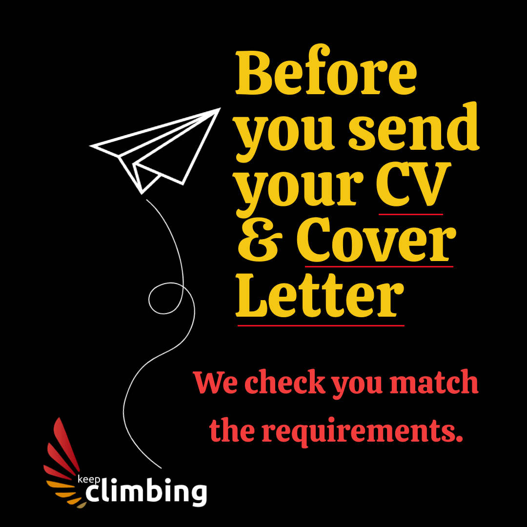 At Keep Climbing, we check that you match the requirements, before you send your CV & Cover letter.